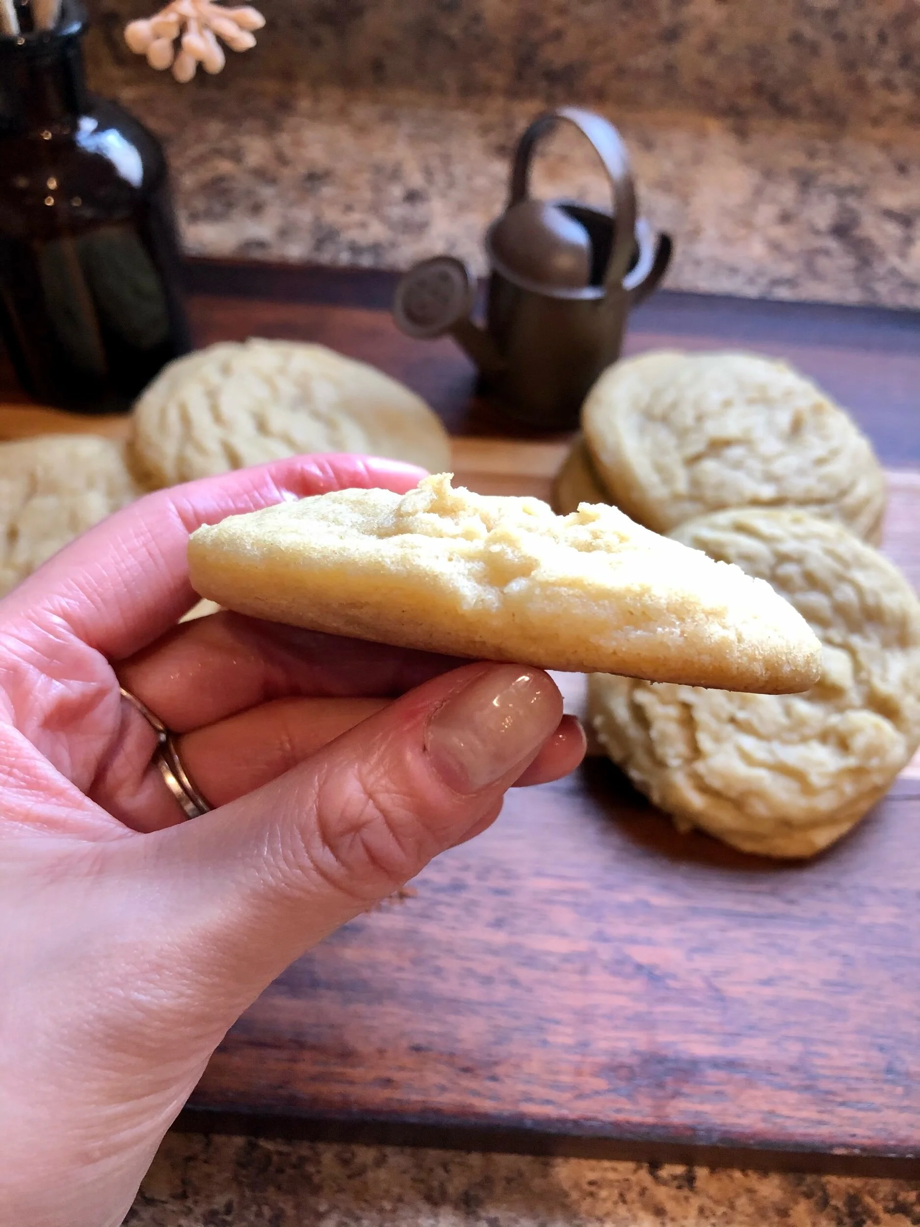 One type of cookie that I’ve always tended to disregard as boring, bland, and not typically worth it, are sugar cookies. Too often they were tough, overly sweet, or bland, sometimes managing to be the trifecta of all three at the same time. Most often you see sugar cookies that are rolled out and cut into cute little shapes, iced and then they’re rock hard by the time you actually get to eat them. They just were not my favorite, and I would happily pass by them for something chocolate covered.
